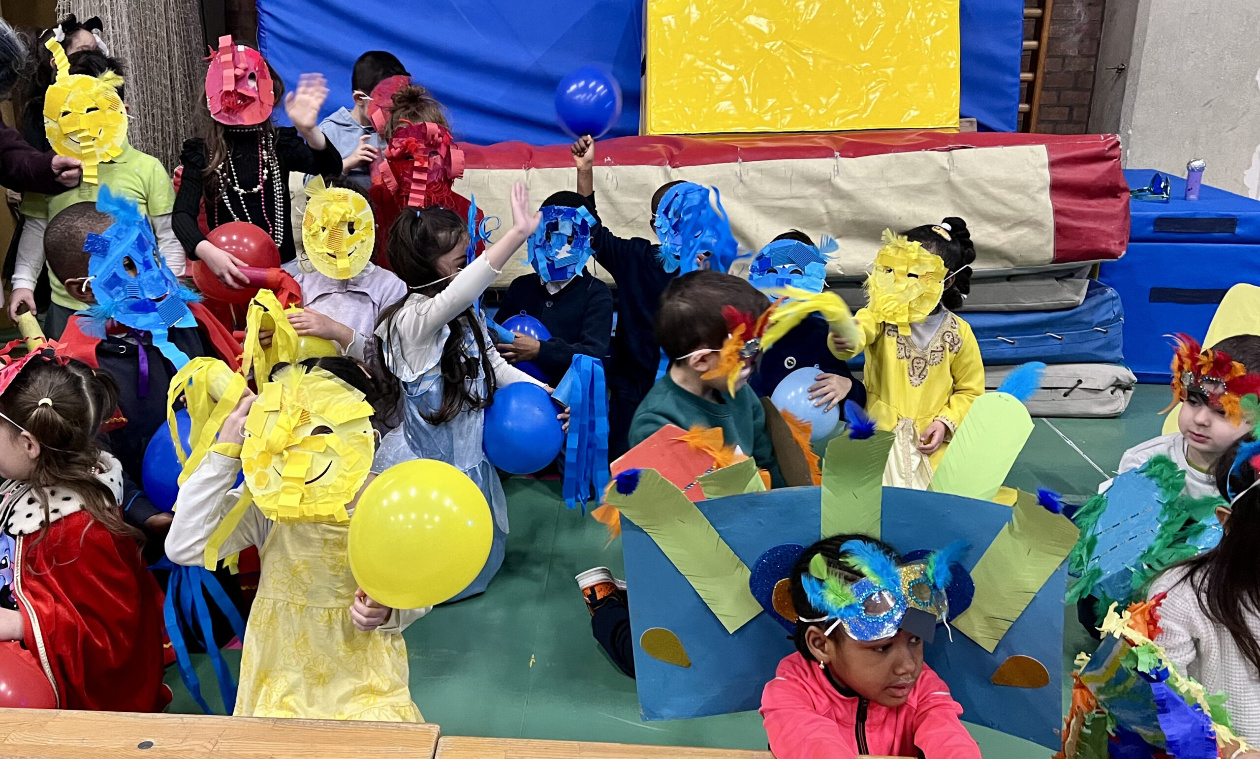 L’ambiance était résolument festive et dynamique. Les enfants ont dansé, défilé et partagé des moments de joie dans un décor rempli de couleurs. Les enseignants ont également joué le jeu avec enthousiasme, apportant chacun une touche personnelle et originale à leurs costumes et aux chorégraphies proposées.