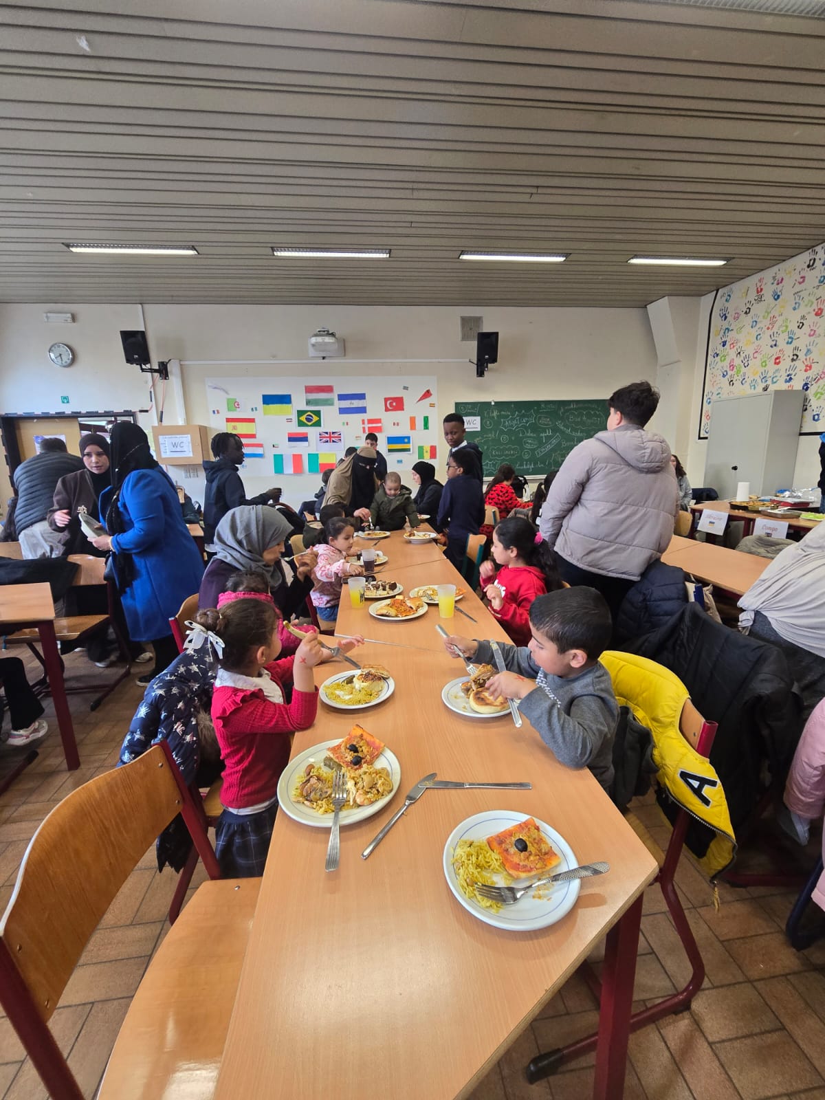 Le principe de la soirée était simple mais porteur de sens : chaque famille était invitée à préparer un plat, salé ou sucré, représentant ses origines culturelles. Grâce à cette diversité culinaire, les tables se sont rapidement transformées en un véritable voyage à travers le monde, offrant une multitude de saveurs, de couleurs et de traditions.